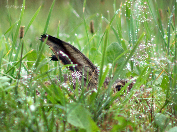 Dziękuje wszystkim za komentarze i ciesze się że się fotki podobają. Szczęście pomogło go wypatrzeć z daleka ;-) , polanka na której kicał jest położona wyżej niż miejsce z którego robiłem zdjęcia i dlatego aparat nie zamókł ;-). Zdjęcie 30 jak i 32 to cropy.Tair 300mm jest poręczny jak lufa od czołgu do tego zamglony i pochmurny dzień iso400 1/350s z ręki na stojąco, ciężko było ale jestem zadowolony, strzeliłem kilka fotek i już go nie było. Na fotce 32 mało go widać ale myślę ze ujęcie jest na tyle i ciekawe i zabawne że wartko je pokazać.